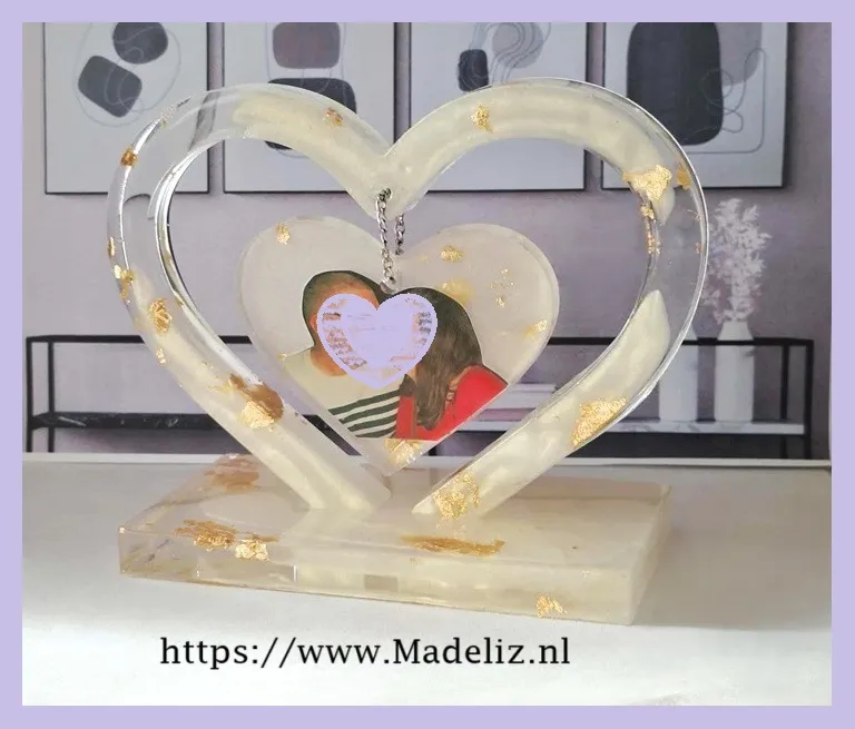 Prachtig hart op standaard, met foto (foto afgeschermd vw privacy)