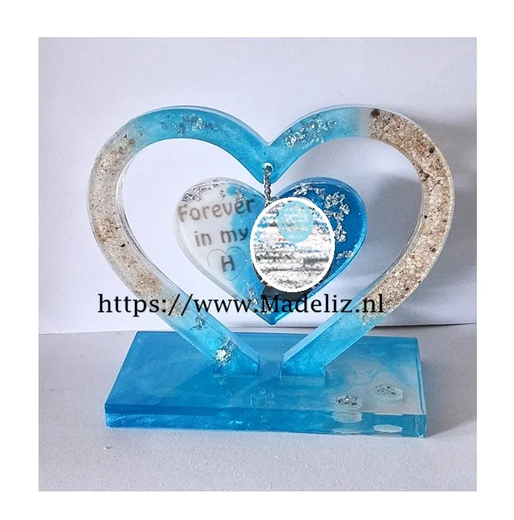 Dit Prachtig hart op standaard, met foto - rondom het as (as kan ook in de voet)