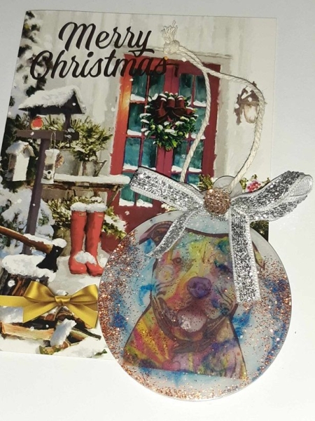 Super lieve Stafford kersthanger, deze unieke kersthanger is leuk om in de kerstboom te hangen maar ook erg leuk als deco hanger.