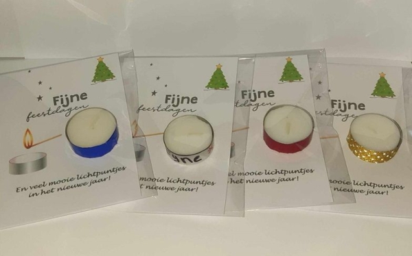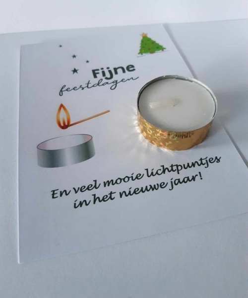 Een mooi kaartje met pakkende tekst en een opvallend waxine kaarsje, kant en klaar om te geven.