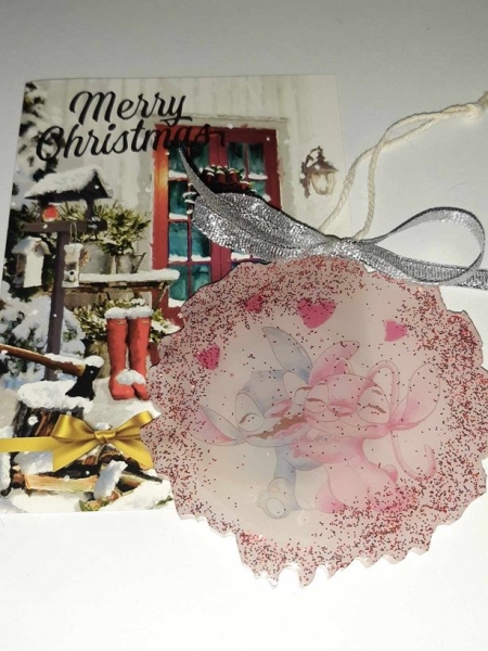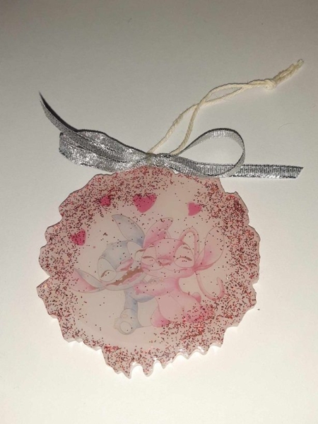 Lieve knuffelende monstertjes, deze grote unieke epoxy kersthanger is leuk om in de kerstboom te hangen maar doet het ook erg leuk als deco-hanger.