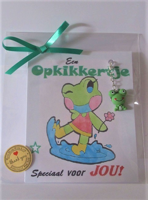 Dat kun je allemaal verpakken in een opkikkertje, een lief klein kaartje met een mooi hangertje er bij.
