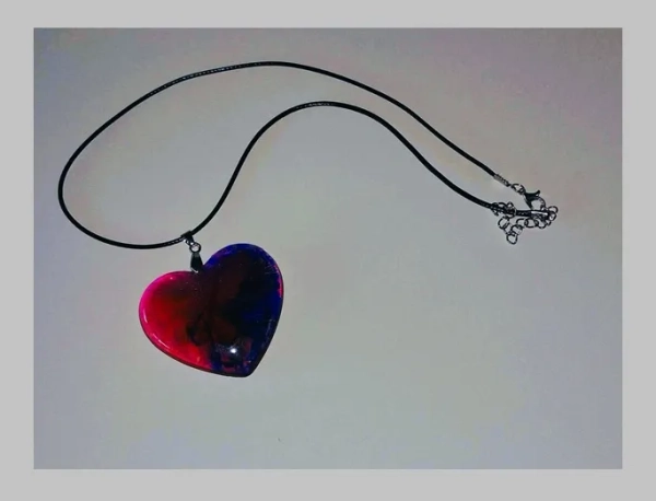 Complete ketting met hand gegoten hart hanger (5cm) in roze / paars en div andere tinten.